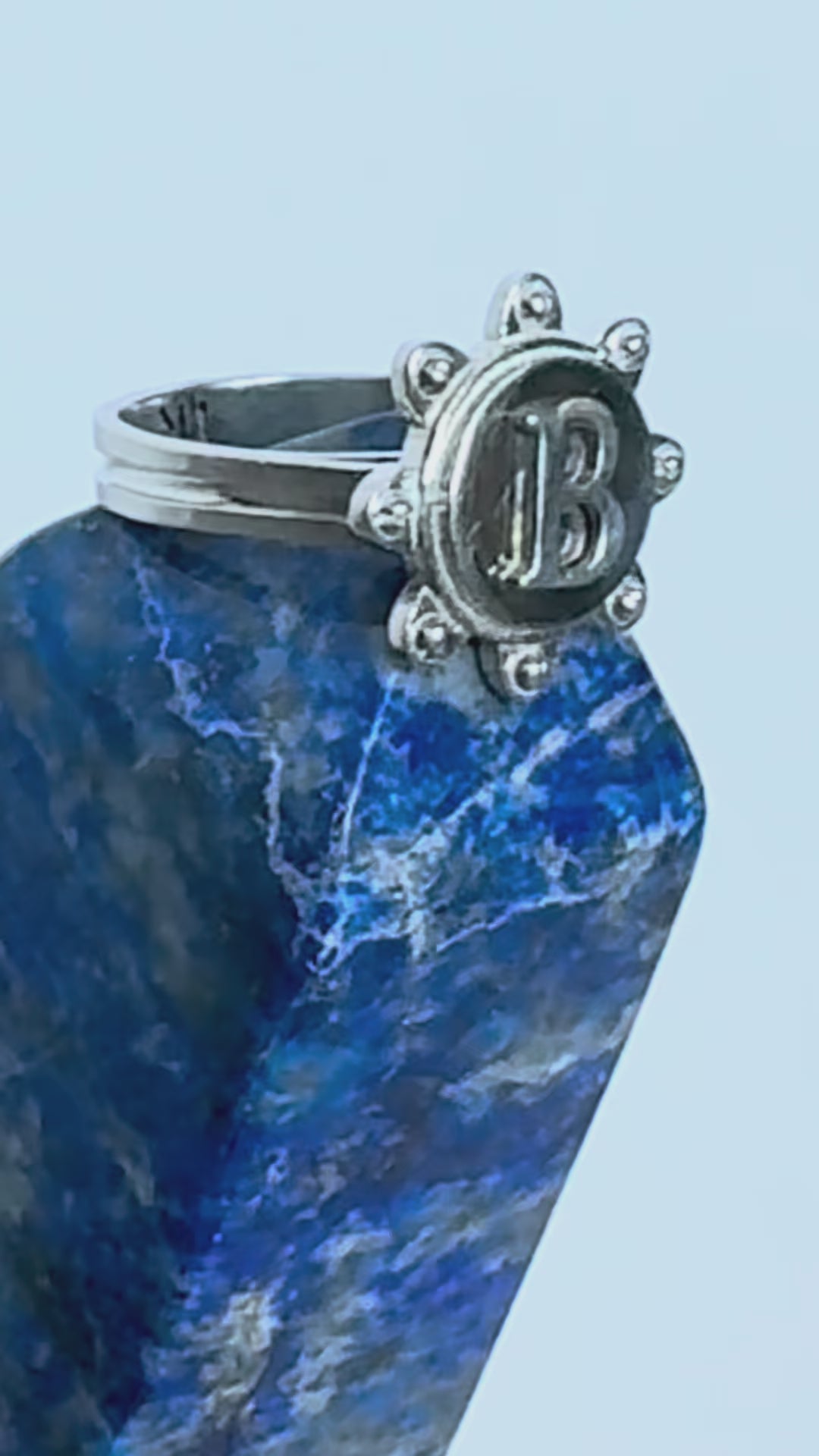 Full of light, a tribute to solar energy and the vitality it brings. Symbolizing the Sun tarot card, the strength of fire signs, and the eternal flame within, it features a polished disc at its center - surrounded by eight sculpted anchors, each crowned with a nail-head stud, grounding the ring in strength, symmetry, power.